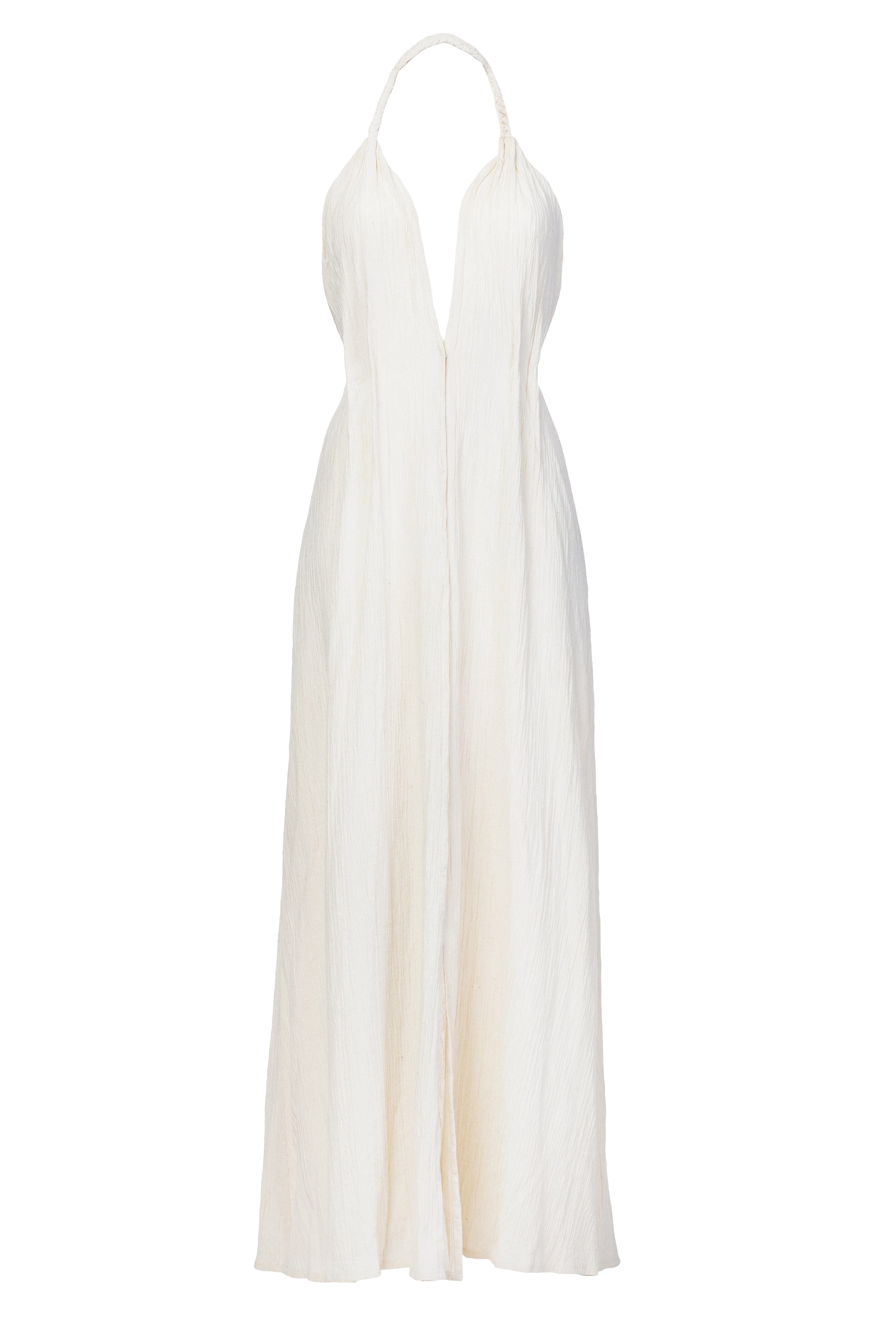 Nomada Dress, a stunning piece from our classic collection that embodies elegance and versatility. Crafted from fine, ultra-thin linen, this dress is designed to keep you cool during the hot summer months while providing a touch of warmth on cooler days. Its breathable fabric ensures comfort, making it an ideal choice for any climate.